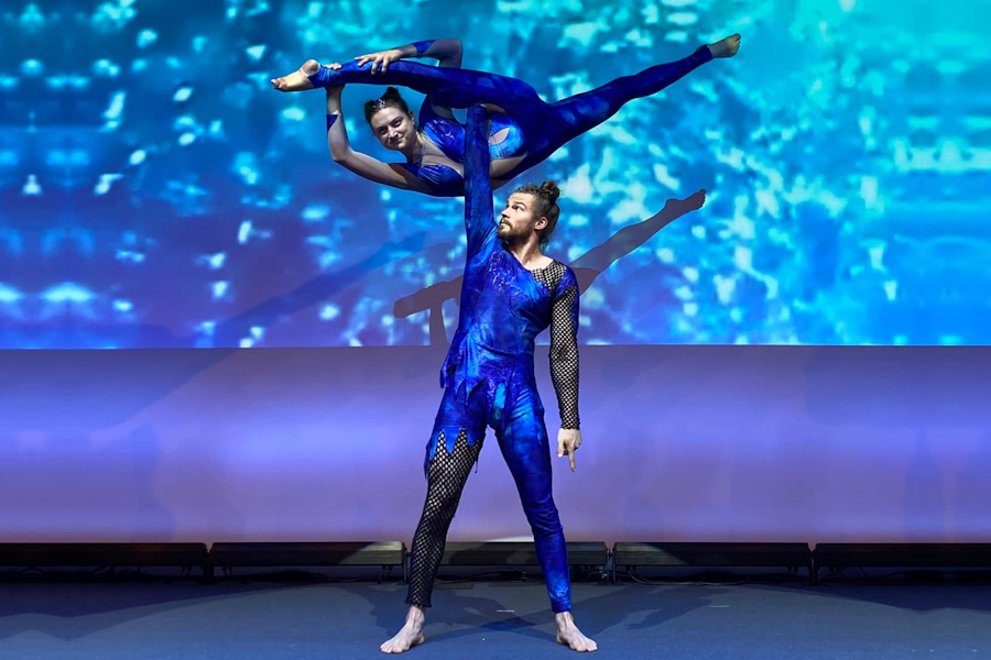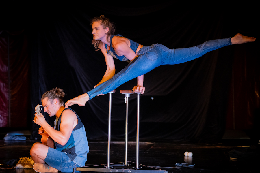 With humor, emotion, and circus artistry, the performance "TWO GATHER" explores various aspects of interpersonal relationships.