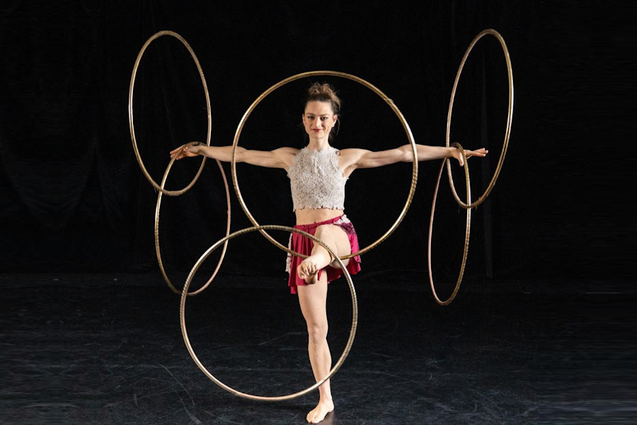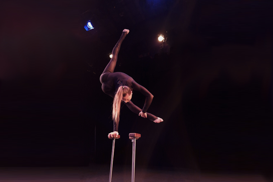 For example with Partneracrobatics, Handbalance, Juggling, Hula Hoop, Contortion, Mirror Costumes...